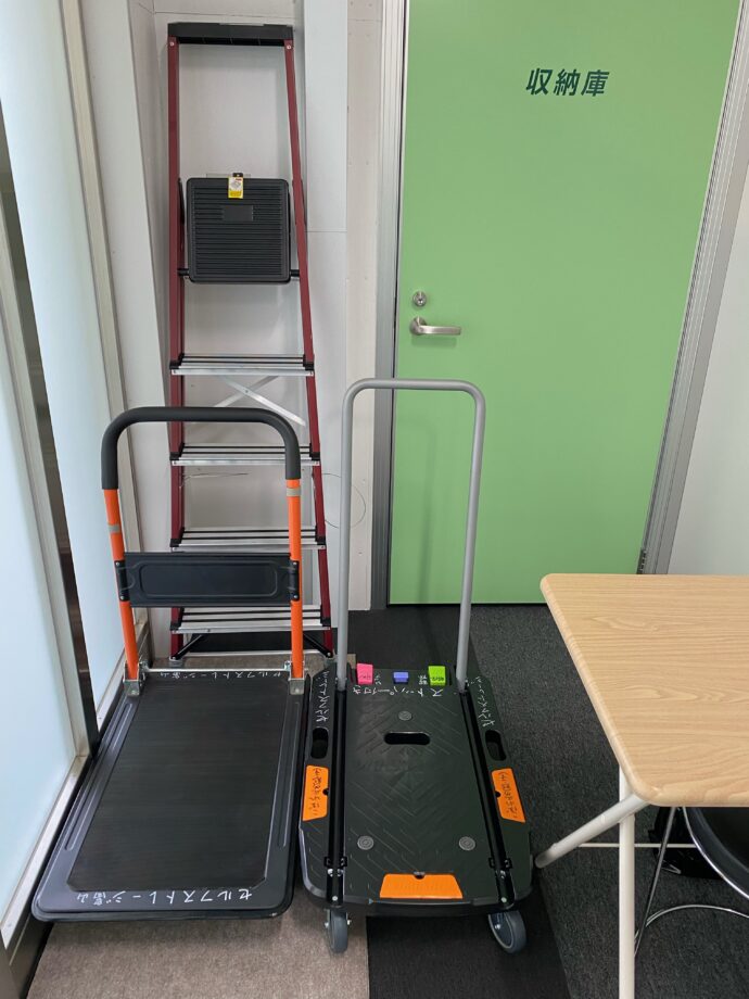 また、収納していた脚立も開放しましたので、どちらもご自由にご利用下さい。ご利用が終わりましたらお手数ですが元の場所にお戻し下さい。