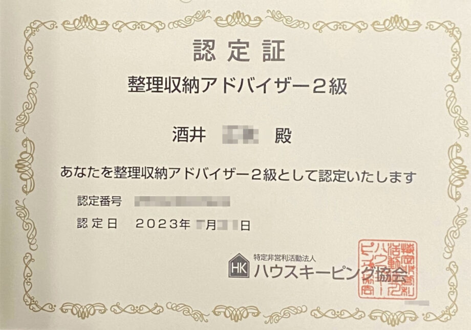 セルフストレージ富山のスタッフである酒井が、この度ハウスキーピング協会が認定する「整理収納アドバイザー2級」資格を取得しましたのでご報告致します。